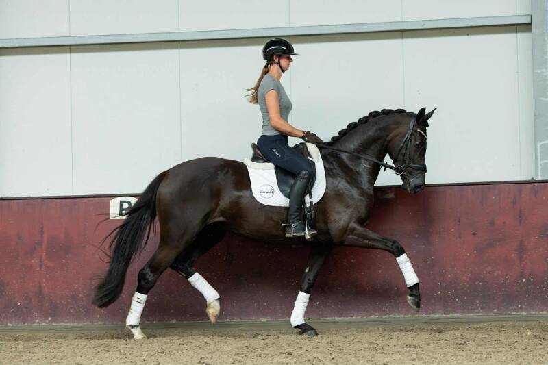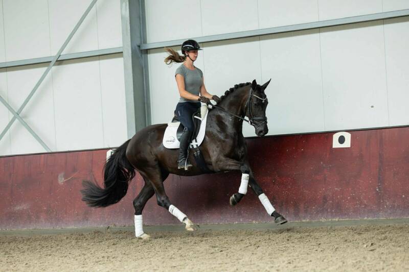 Ze is zeer makkelijk te rijden, fijn voorwaarts met een hele makkelijke lichte aanleuning. Ook deze komt uit eigen fokkerij en in deze lijn is er zéér veel sport terug te vinden.
