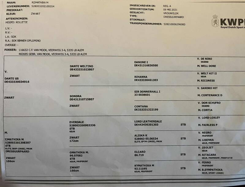 Ze is röntgenologisch gekeurd en helemaal in orde inclusief hals en rug, ze is in het bezit van het prok-certificaat.