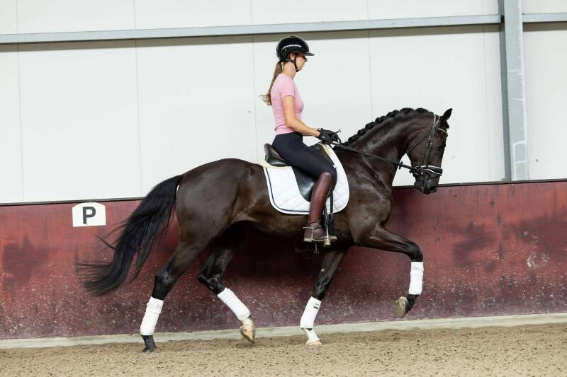 Hij zou heel geschikt zijn voor iemand die van de pony af komt of voor een bange/ onzekere ruiter. Hij heeft 3 goede gangen waarbij zijn galop wel echt uitblinkt en veel bodem pakt. Daarnaast een makkelijke, lichte aanleuning en heel leergierig. Ook hij komt net zoals de andere uit eigen fokkerij.